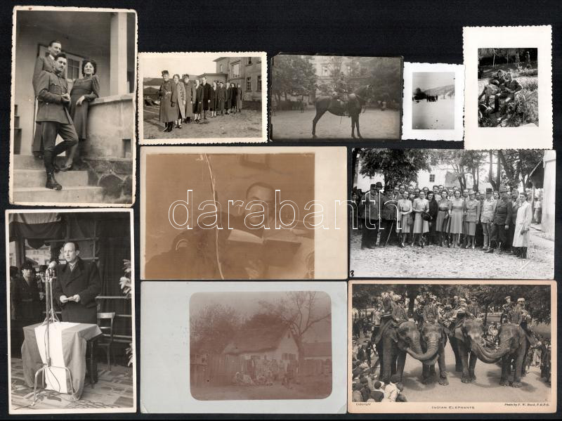 Beschreibung: cca 1915-1945 10 db katonai fotó és fotólap (közte megírt tábori posta), vegyes méretben és állapotban