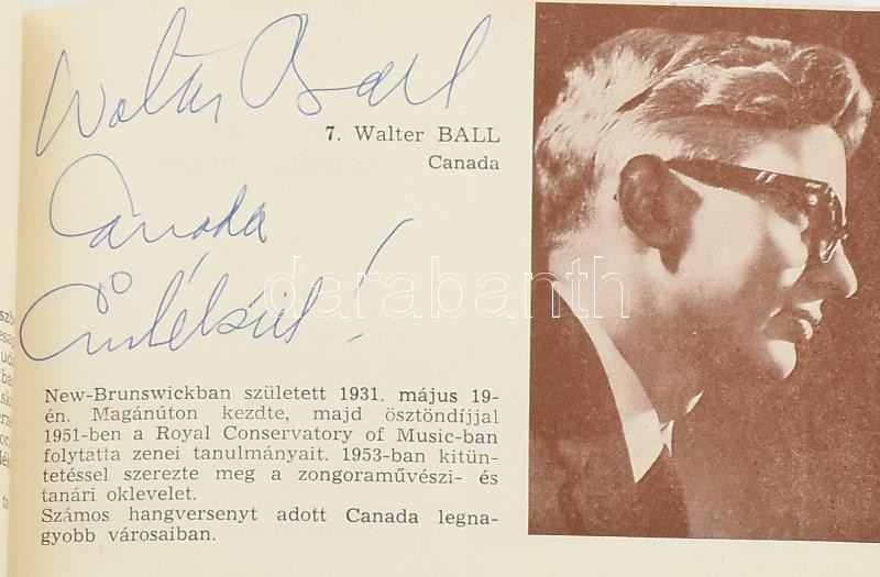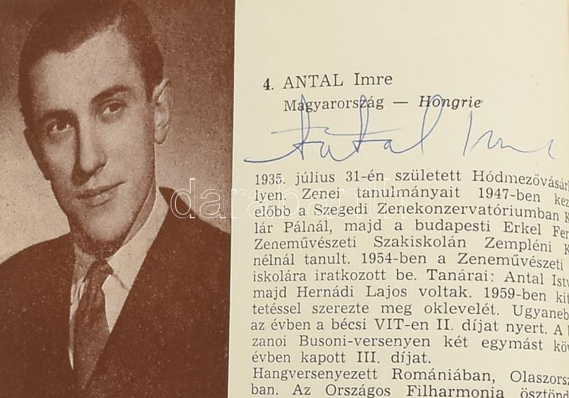 1961 Liszt-Bartók emlékév, Nemzetközi Liszt-Bartók zongoraverseny. Bp., Zeneműkiadó Vállalat-ny., 76+(4) p. Magyar és francia nyelven. Benne magyar és külföldi művészek aláírásaival. Kiadói papírkötés.