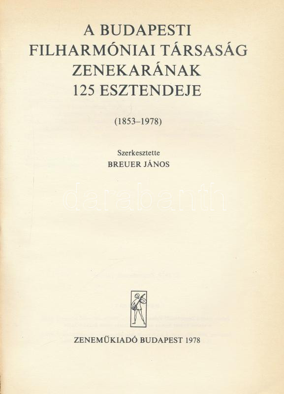 A Budapesti Filharmóniai Társaság Zenekarának 125 esztendeje (1853-1978). Szerk.: Breuer János. Bp., 1978, Zeneműkiadó. Kiadói egészvászon-kötés, kiadói papír védőborítóban.
