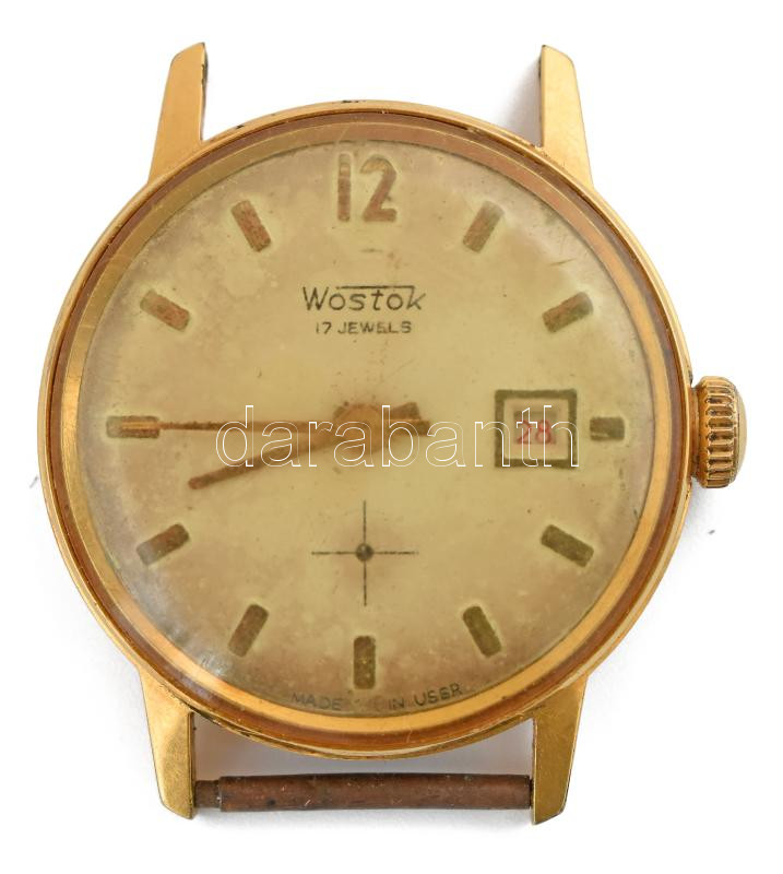 Wostok 17 köves karóra, dátumkijelzős, másodpercmutató nélkül, kissé k... https://www.darabanth.com/de/436-Fernauktion/436.0/Kunst-Dokumente-andere-Sammelgebiete/Uhren~500010/Wostok-17-koves-karora-datumkijelzos-masodpercmutato-nelkul-kisse-karcos-uveggel-d-34~II2829698