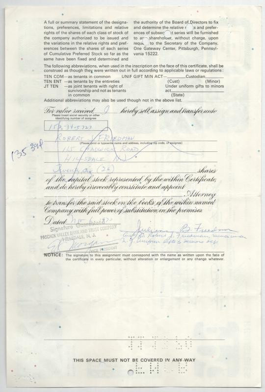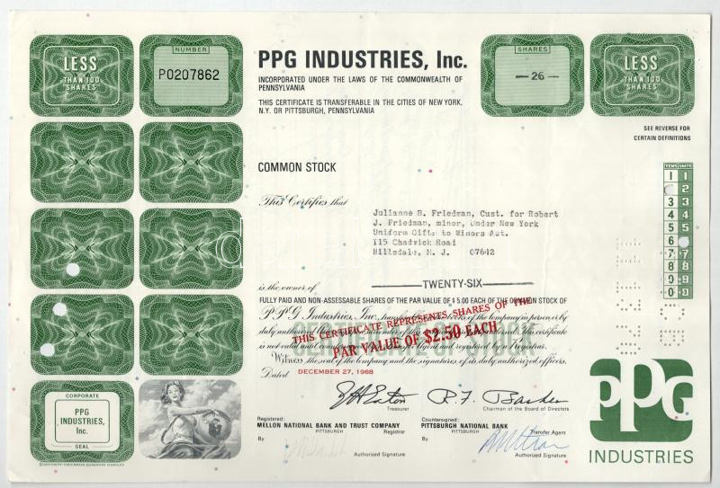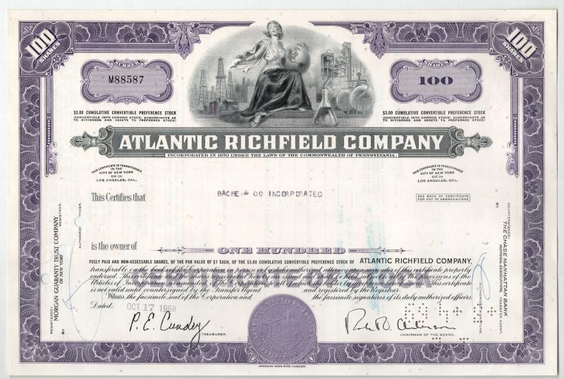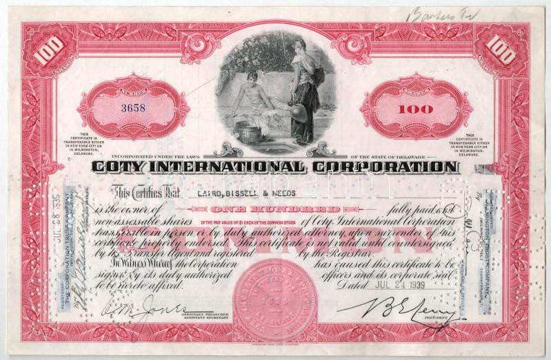 Amerikai Egyesült Államok 1939-1979. 7 darabos részvény tétel, benne "PPG Industries", "First Charter Financial", "Wisconsin Gas Company", "Barry Wright Corporation", "Atlantic Richfield Company", "Foremost Dairies", "Coty International Corporation", mind perforált, közte lyukasztott T:II-III tűlyuk USA 1939-1979. 7 pieces stock lot, inclue "PPG Industries", "First Charter Financial", "Wisconsin Gas Company", "Barry Wright Corporation", "Atlantic Richfield Company", "Foremost Dairies", "Coty International Corporation", with perforation C:XF-F hole