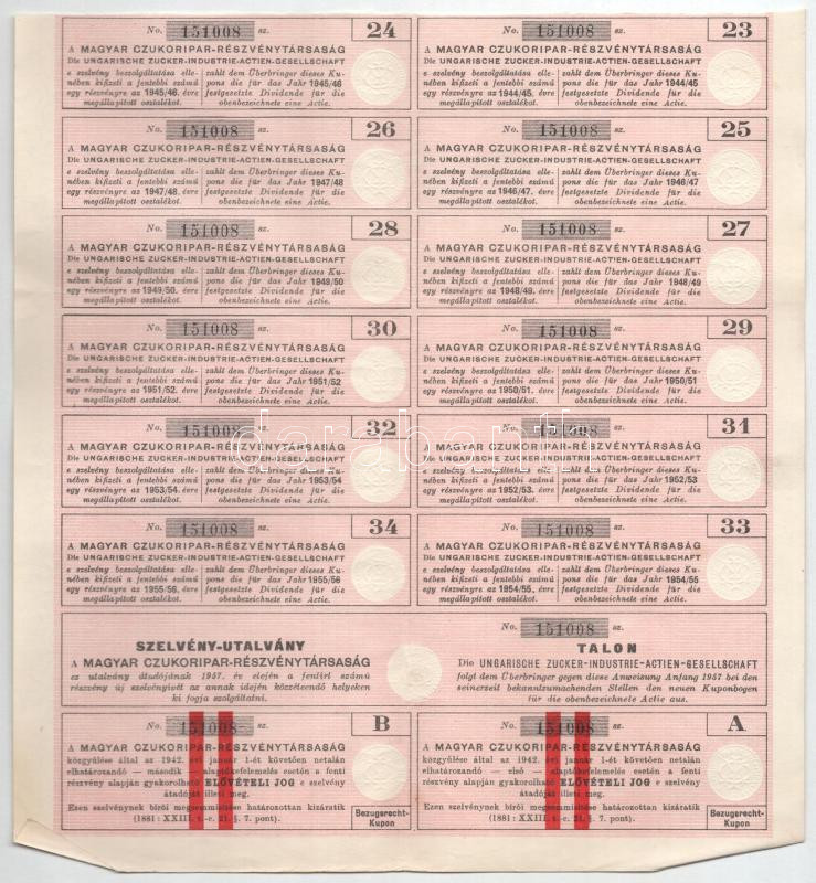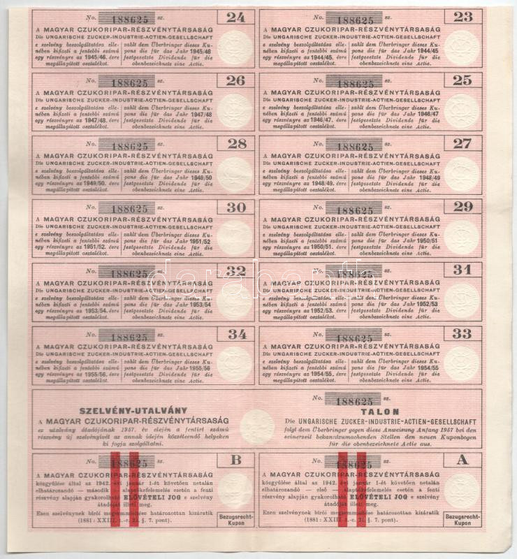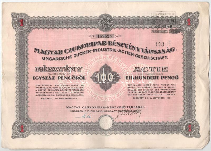 Budapest 1923-1941. "Magyar Czukoripar-Részvénytársaság" rés... https://www.darabanth.com/de/436-Fernauktion/436.0/Numismatik/Aktien-und-Tickets~1500005/Budapest-1923-1941-Magyar-Czukoripar-Reszvenytarsasag-reszvenye-100K-rol-plus-600K-rol-plus-20~II2825715