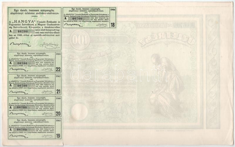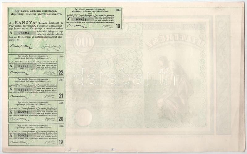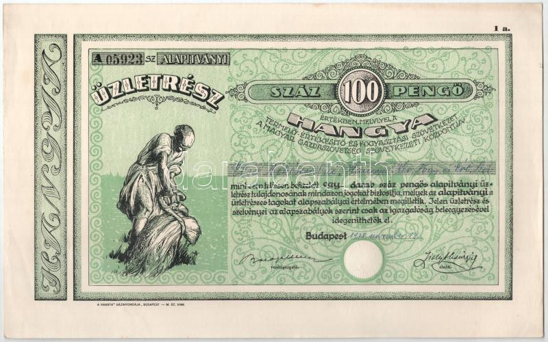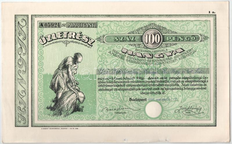 Budapest 1928-1939. "Hangya Termelő-Értékesítő és Fogyasztási Szö... https://www.darabanth.com/de/436-Fernauktion/436.0/Numismatik/Aktien-und-Tickets~1500005/Budapest-1928-1939-Hangya-Termelo-Ertekesito-es-Fogyasztasi-Szovetkezet-uzletresze-100P~II2826161
