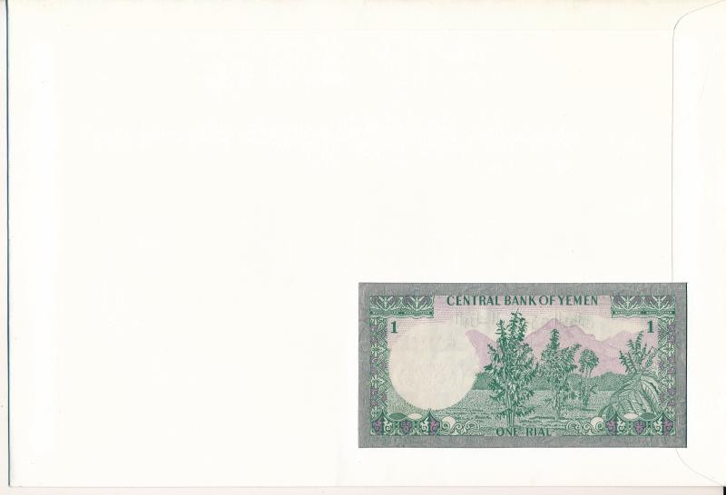 Beschreibung: Jemen 1976. 1R borítékban, alkalmi bélyeggel és bélyegzéssel T:I Yemen 1976. 1 Rial in envelope with stamps and cancellations C:UNC