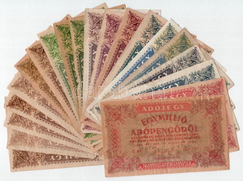 20db-os vegyes adópengő tétel, közte 1946. 1.000.000AP vízjeles papíro... https://www.darabanth.com/de/436-Fernauktion/436.0/Numismatik/Ungarische-Banknoten~1500007/20db-os-vegyes-adopengo-tetel-kozte-1946-1000000AP-vizjeles-papiron-forditott-cimerrel-~II2835834