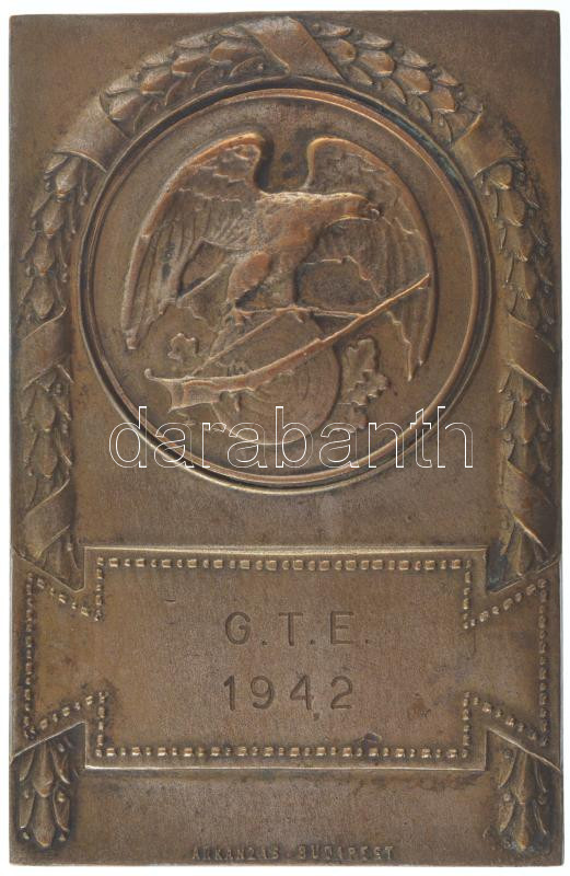1942. "G.T.E. 1942" ezüstözött bronz sportlövő díjplakett "Arkanzas Budapest" gyártói jelzéssel (85x55mm) T:1- patina