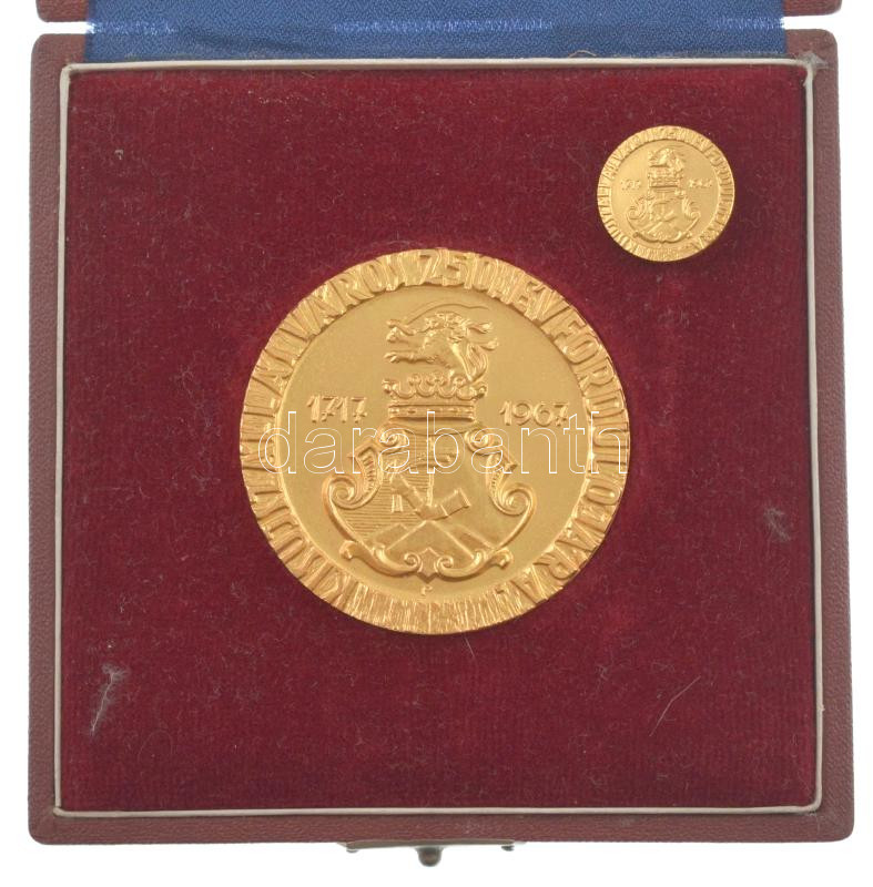Beschreibung: 1967. "Kisújszállás város 250. évfordulójára 1717-1967" egyoldalas, aranyozott bronz emlékérem miniatűrrel, dísztokban (50mm) T:1- fülnyom