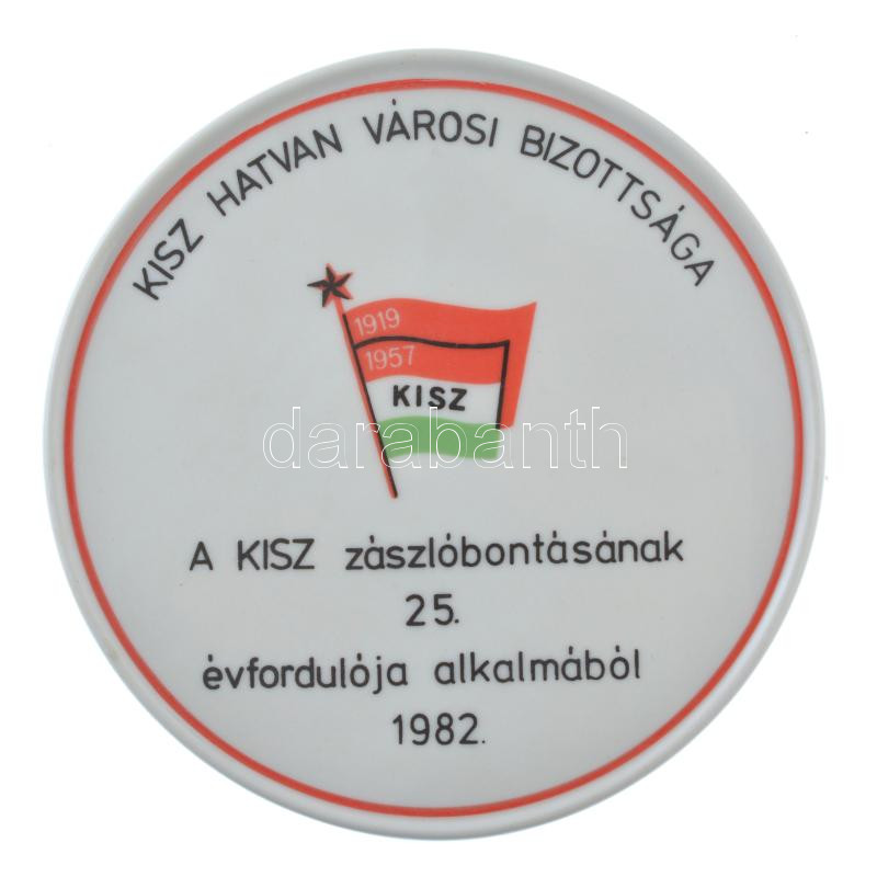 1982. "KISZ Hatvan városi bizottsága - A KISZ zászlóbontásának 25... https://www.darabanth.com/de/436-Fernauktion/436.0/Numismatik/Ungarische-Gedenkmunzen-Plaketten~1500009/1982-KISZ-Hatvan-varosi-bizottsaga-A-KISZ-zaszlobontasanak-25-evforduloja-alkalmabol-~II2835212