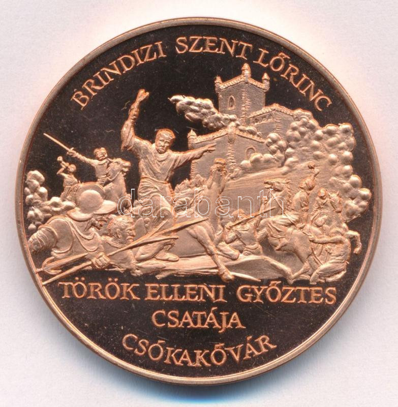 1995. "Brindizi Szent Lőrinc török elleni győztes csatája - Csóka... https://www.darabanth.com/de/436-Fernauktion/436.0/Numismatik/Ungarische-Gedenkmunzen-Plaketten~1500009/1995-Brindizi-Szent-Lorinc-torok-elleni-gyoztes-csataja-Csokakovar-300-eves-a-Kapucin~II2824705