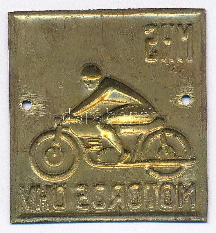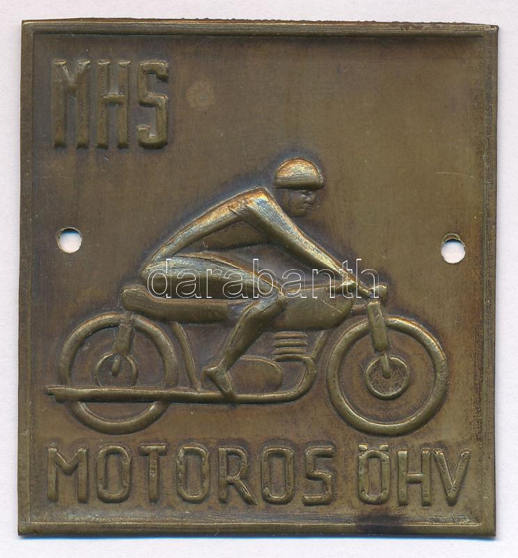 ~1950. "MHS (Magyar Honvédelmi Sport Szövetség) Motoros ÖHV" szögletes lemez jelvény, 2 rögzítőlyukkal (52x48mm) T:1-