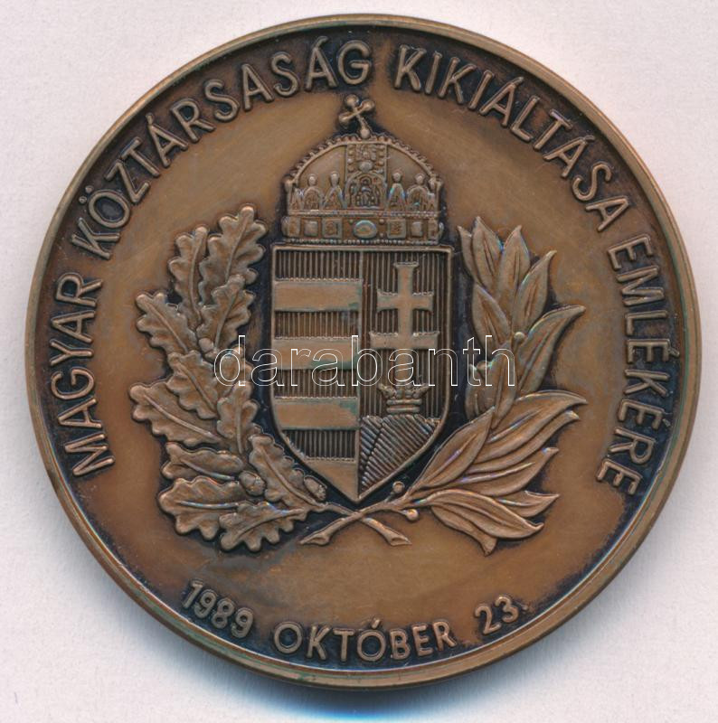 Bajnok Béla (1937-2020) / Szabó Géza (1939-) 1990. "Magyar Köztársaság kikiáltása emlékére 1989. október 23. / Republica Hungariae" kétoldalas bronz emlékérem (42,5mm) T:1-