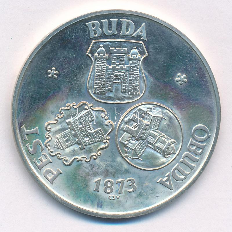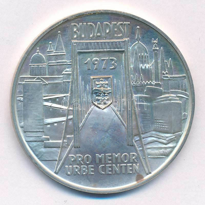 Beschreibung: Csucs Viktória (1934-1993) 1973. "Pest - Buda - Óbuda - 1873 / Budapest 1973 - Pro memor urbe centen" ezüstözött bronz emlékérem (42,5mm) T:1-,2 kis patina