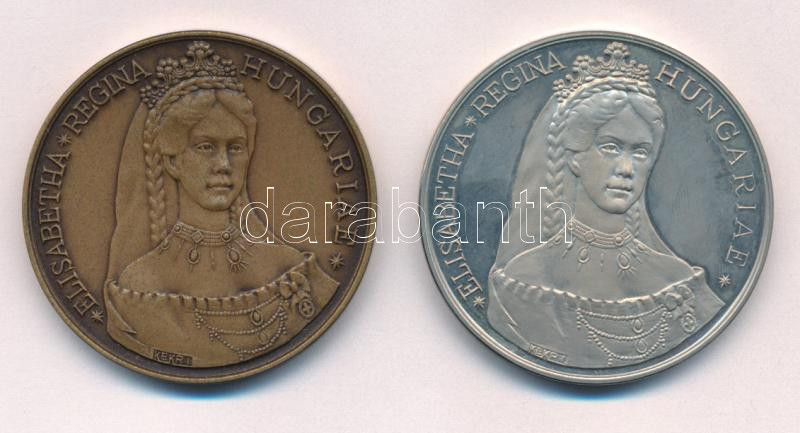 Kelemen Kristóf (1922-2001) 1987. "Elisabetha Regina Hungariae / Születésének emlékére a Magyar Éremgyűjtők Egyesülete" bronz emlékérem (42,5mm) + ezüstözött bronz emlékérem (42,5mm) T:1 kis patina