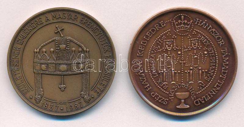 Beschreibung: Kelemen Kristóf (1922-2001) 1987. "MÉE / Erzsébet királyné születésének emlékére" bronz emlékérem (42,5mm) + Fritz Mihály (1947-) 1989. "MÉE Székesfehérvár - III. István király - A fehérvári jog adományozója" kétoldalas bronz emlékérem (42,5mm) T:1- kis patina Adamo BP22, SF11