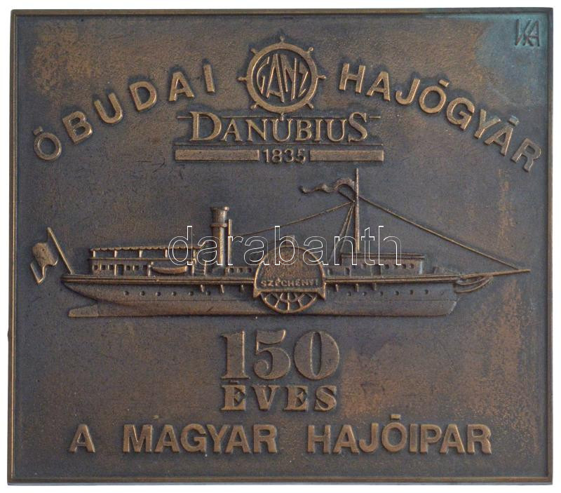 Kiss Nagy András (1930-) 1985. "150 éves a Magyar Hajógyár - Óbudai Hajógyár - Danubius" bronz emlékplakett (128x112mm) T:2