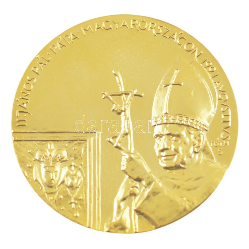 Tóth Sándor (1933-) 1991. "Máriapócs 1991. augusztus 18. / II. János Pál pápa Magyarországon 1991. augusztus" aranyozott fém emlékérem tokban (65mm) T:1,1-