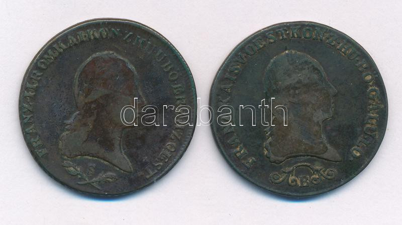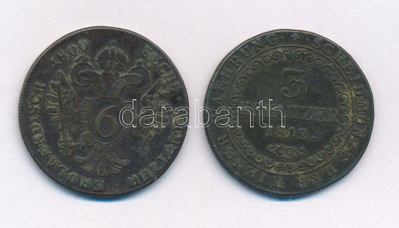 Beschreibung: 1800S 6kr Cu "I. Ferenc" Szomolnok + 1812B 3kr Cu "I. Ferenc" Körmöcbánya T:2-,3 patina