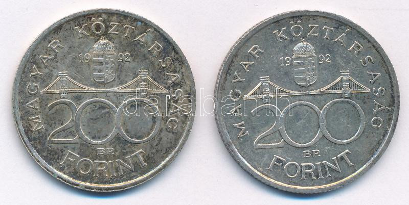 Beschreibung: 1992. 200Ft Ag "MNB" (2x) T:1-,2 patina