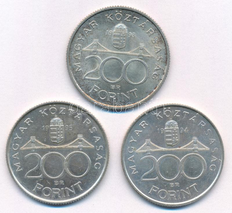 Beschreibung: 1993. 200Ft Ag "MNB" + 1994-1995. 200Ft Ag "Deák" (2x) T:1-,2 patina Adamo F13, F13.1