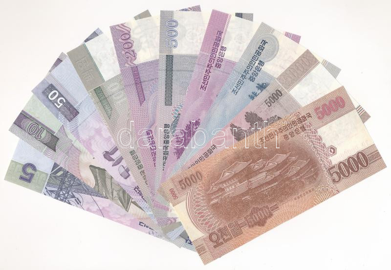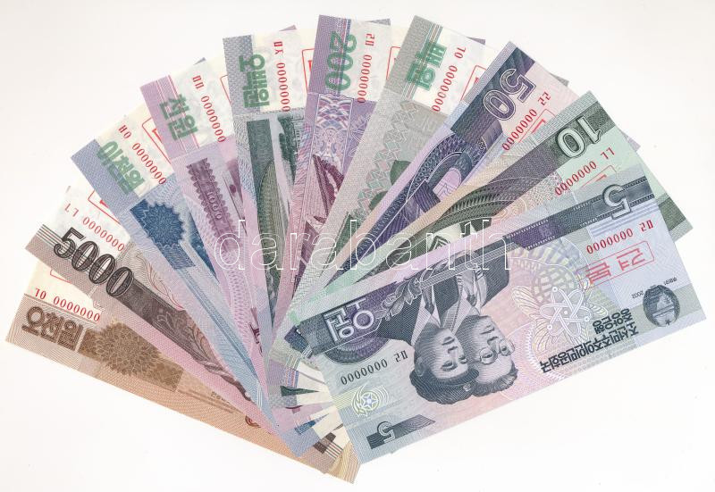Észak-Korea 2002-2013. 5W-5000W (10xklf) MINTA felülbélyegzéssel és "0000000" sorszámmal T:I,I-