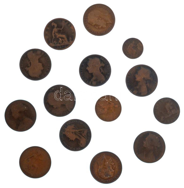 Nagy-Britannia 1861-1920. 1f-1p bronz "Viktória" "V. György" (14db, 12xklf) T:3,3- United Kingdom 1861-1920. Farthing - 1 Penny bronze "Victoria" "George V" (14pcs, 12xdiff) C:F,VG