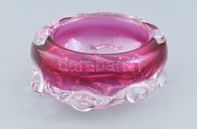 Beschreibung: Chribska cseh művészi üveg tálka / asztaldísz. Terv: Josef Hospodka, pink, kézzel készített üveg. Jelzés nélkül: Bohémia, hibátlan, d: 10 cm