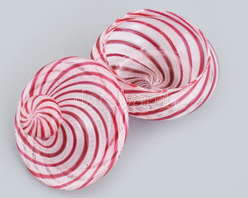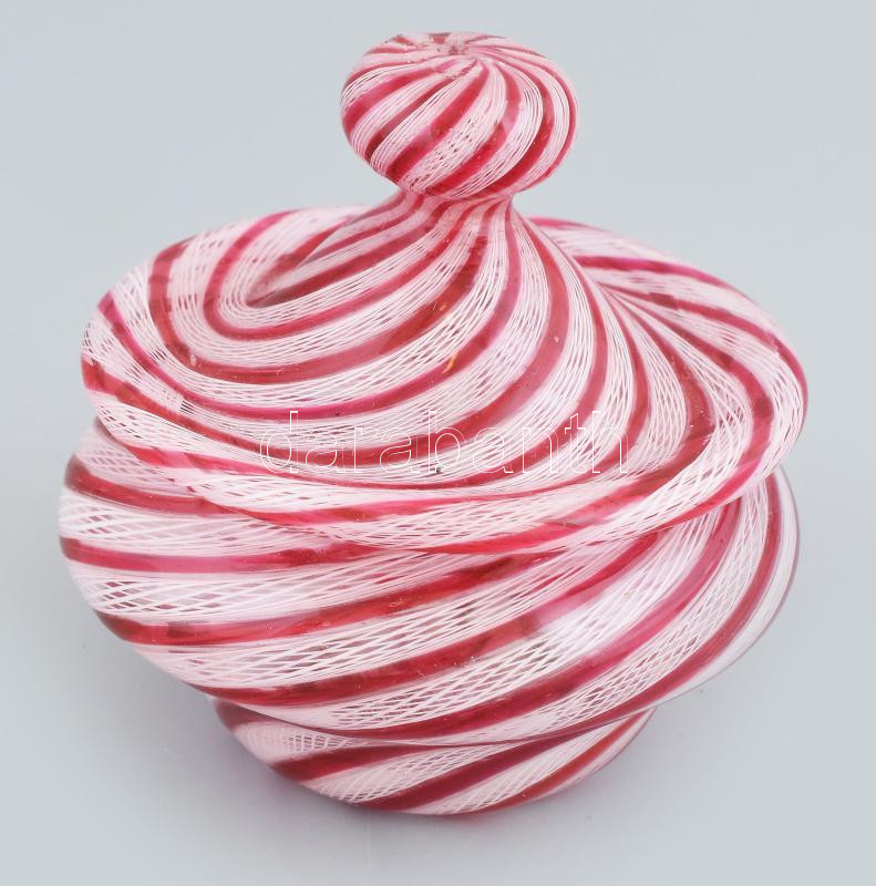 Murano filigrán száldíszítéses, fújt, üveg bonbonier, hibátlan, jelzés... https://www.darabanth.com/de/436-Fernauktion/436.0/Porzellan-Keramik-Glass/Glaser~500006/Murano-filigran-szaldisziteses-fujt-uveg-bonbonier-hibatlan-jelzes-nelkul-m-9-cm~II2836497