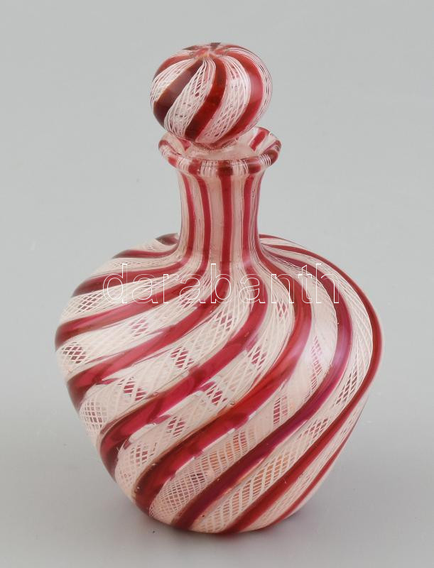 Murano filigrán száldíszítéses, fújt, üveg palack, dugóval, dugó belső... https://www.darabanth.com/de/436-Fernauktion/436.0/Porzellan-Keramik-Glass/Glaser~500006/Murano-filigran-szaldisziteses-fujt-uveg-palack-dugoval-dugo-belso-reszen-kis-feszu~II2836494