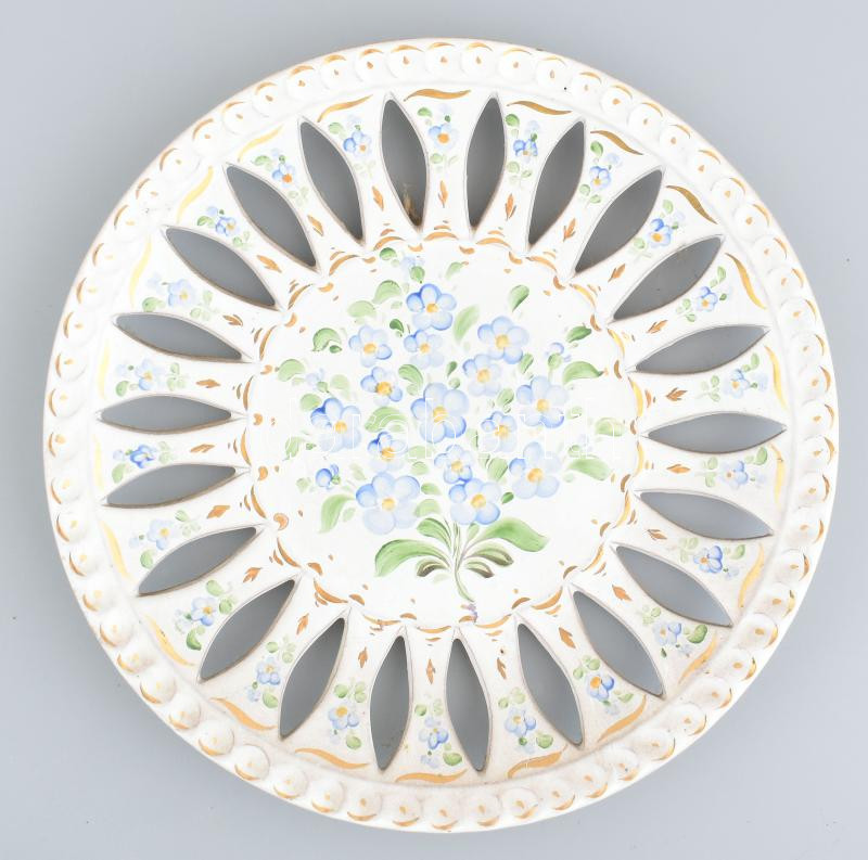 Beschreibung: Mihály Béla: Áttört virágos falitál, jelzett, kopásokkal, d: 25,5 cm