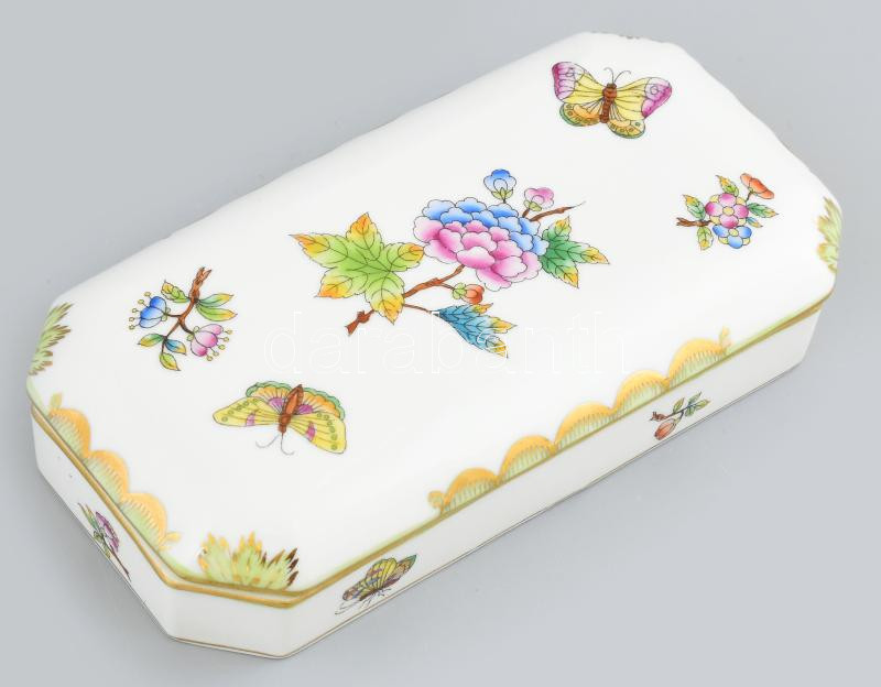 Herendi Viktória mintás porcelán doboz, kézzel festett, jelzett, kis k... https://www.darabanth.com/de/436-Fernauktion/436.0/Porzellan-Keramik-Glass/Porzellan~500005/Herendi-Viktoria-mintas-porcelan-doboz-kezzel-festett-jelzett-kis-kopasnyomokkal-17x9x4-cm~II2828063