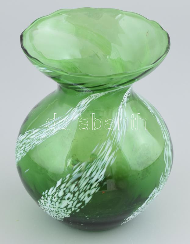 Beschreibung: Lengyel Huta Laura zöld kristály váza, jelzés nélkül, hibátlan, m: 17,5 cm