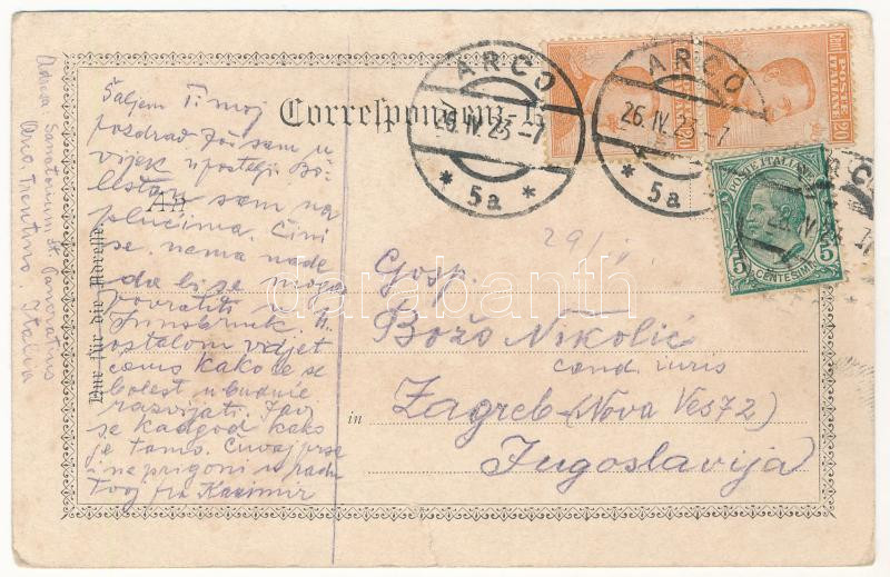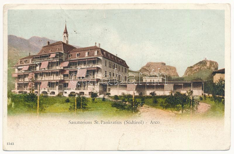 1923 Arco (Südtirol), Sanatorium St. Pankratius (tear) https://www.darabanth.com/de/437-Fernauktion/437.0/Ansichtskarten/Italien~1500081/1923-Arco-Sudtirol-Sanatorium-St-Pankratius-tear~II2838440