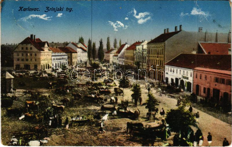 1914 Károlyváros, Karlovac; Zrinjski trg / piac / market (EB) https://www.darabanth.com/de/437-Fernauktion/437.0/Ansichtskarten/Kroatien~1500009/1914-Karolyvaros-Karlovac-Zrinjski-trg-piac-market-EB~II2838261
