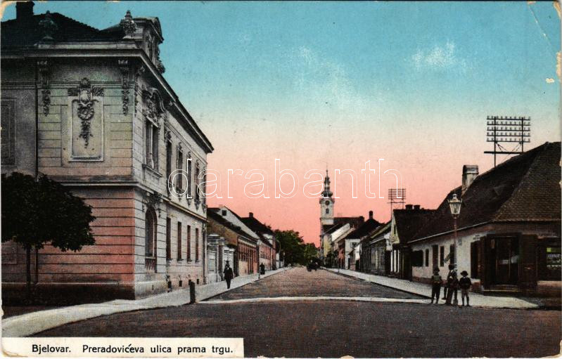 1915 Belovár, Bjelovar; Preradoviceva ulica prama trgu / utca és tér, ... https://www.darabanth.com/de/437-Fernauktion/437.0/Ansichtskarten/Kroatien~1500009/1915-Belovar-Bjelovar-Preradoviceva-ulica-prama-trgu-utca-es-ter-uzlet-street-shop-EK~II2802777