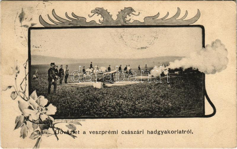1908 Üdvözlet a veszprémi császári hadgyakorlatról, ágyú gyakorlat köz... https://www.darabanth.com/de/437-Fernauktion/437.0/Ansichtskarten/Militaria~1500058/1908-Udvozlet-a-veszpremi-csaszari-hadgyakorlatrol-agyu-gyakorlat-kozben-BKWI-82811~II2851486