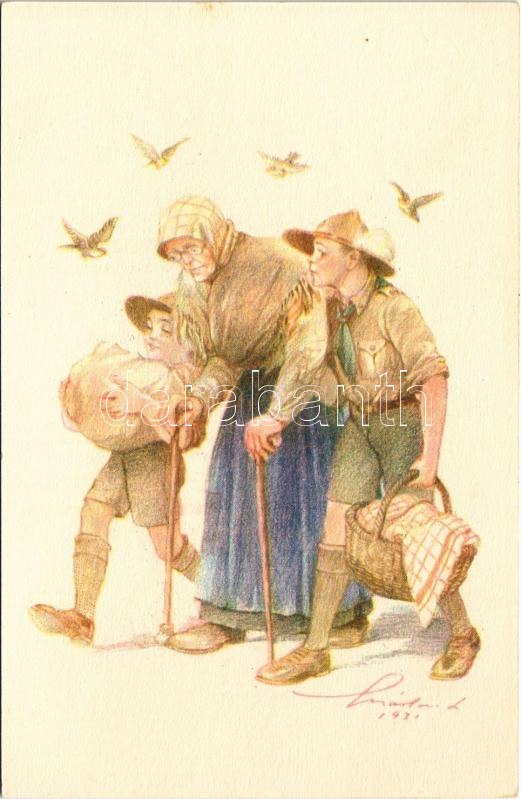 A cserkész, ahol tud, segít. A Magyar Cserkészszövetség kiadása / Hung... https://www.darabanth.com/de/437-Fernauktion/437.0/Ansichtskarten/Pfadfinder~1500025/A-cserkesz-ahol-tud-segit-A-Magyar-Cserkeszszovetseg-kiadasa-Hungarian-boy-scout-art-post~II2841407