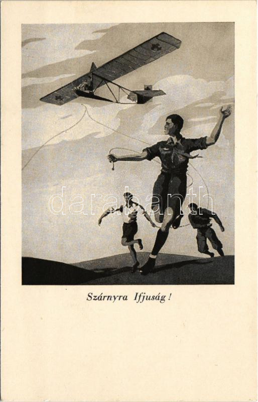 Szárnyra ifjúság! Cserkészek vitorlázó repülőgéppel. Kanitz C. és fiai... https://www.darabanth.com/de/437-Fernauktion/437.0/Ansichtskarten/Pfadfinder~1500025/Szarnyra-ifjusag-Cserkeszek-vitorlazo-repulogeppel-Kanitz-C-es-fiai-Hungarian-boy-sco~II2841397