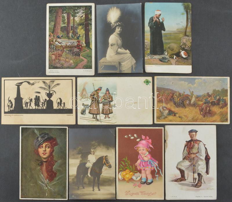 Beschreibung: 830 db régi motívum képeslap: üdvözlő, művészeti, művész, párok, hölgyek, gyerekek stb. érdekes, tartalmas anyag!!