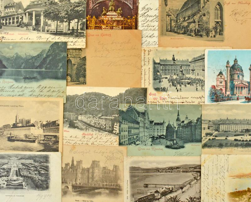 Kb. 120 db RÉGI külföldi város képeslap vegyes minőségben, sok hosszú címzéses / Cca. 120 pre-1945 European town-view postcards in mixed quality, many pre-1905