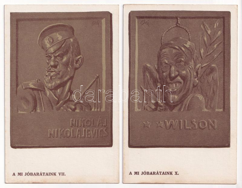 A Mi Jóbarátaink - 10 db régi első világháborús magyar propaganda képe... https://www.darabanth.com/de/437-Fernauktion/437.0/Ansichtskarten/Propaganda-Politik~1500075/A-Mi-Jobarataink-10-db-regi-elso-vilaghaborus-magyar-propaganda-kepeslap-gunyrajzok-Ber~II2853275