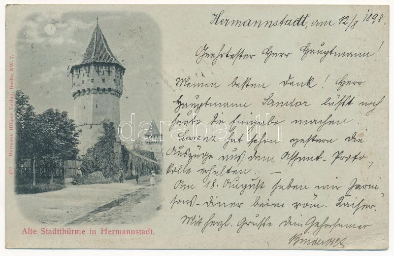 1898 (Vorläufer) Nagyszeben, Hermannstadt, Sibiu; Alte Stadtthürme am ... https://www.darabanth.com/de/437-Fernauktion/437.0/Ansichtskarten/Siebenburgen~1500006/1898-Vorlaufer-Nagyszeben-Hermannstadt-Sibiu-Alte-Stadtthurme-am-Nacht-Regi-varosi-torony~II2841985