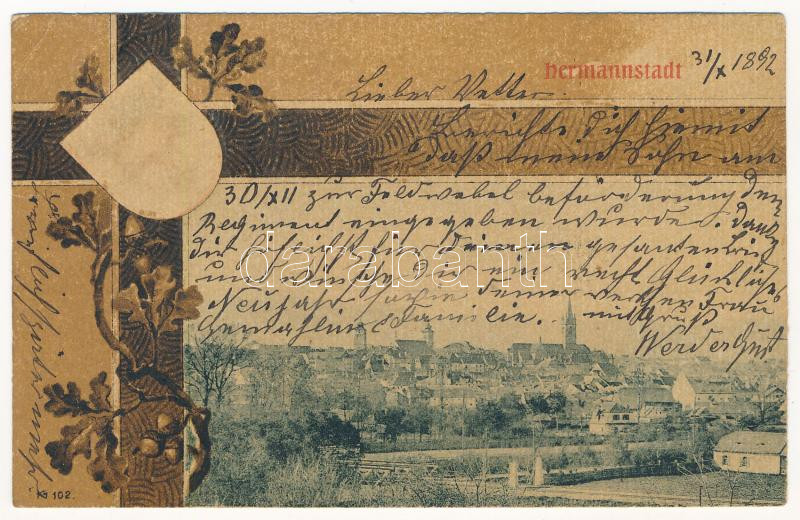 1902 Nagyszeben, Hermannstadt, Sibiu; Szecessziós litho / Carl F. Jick... https://www.darabanth.com/de/437-Fernauktion/437.0/Ansichtskarten/Siebenburgen~1500006/1902-Nagyszeben-Hermannstadt-Sibiu-Szecesszios-litho-Carl-F-Jickeli-Art-Nouveau-litho-EK~II2841982