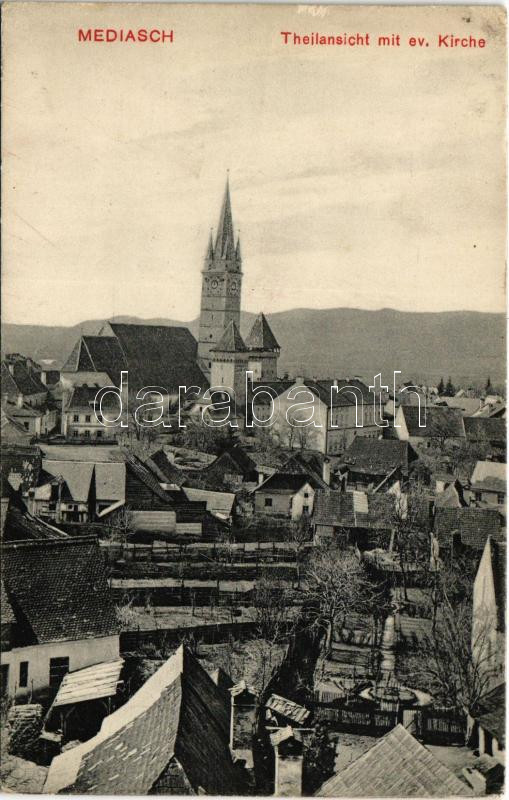 1912 Medgyes, Mediasch, Medias; Teilansicht mit ev. Kirche / látkép ev... https://www.darabanth.com/de/437-Fernauktion/437.0/Ansichtskarten/Siebenburgen~1500006/1912-Medgyes-Mediasch-Medias-Teilansicht-mit-ev-Kirche-latkep-evangelikus-templommal-Fritz~II2854867