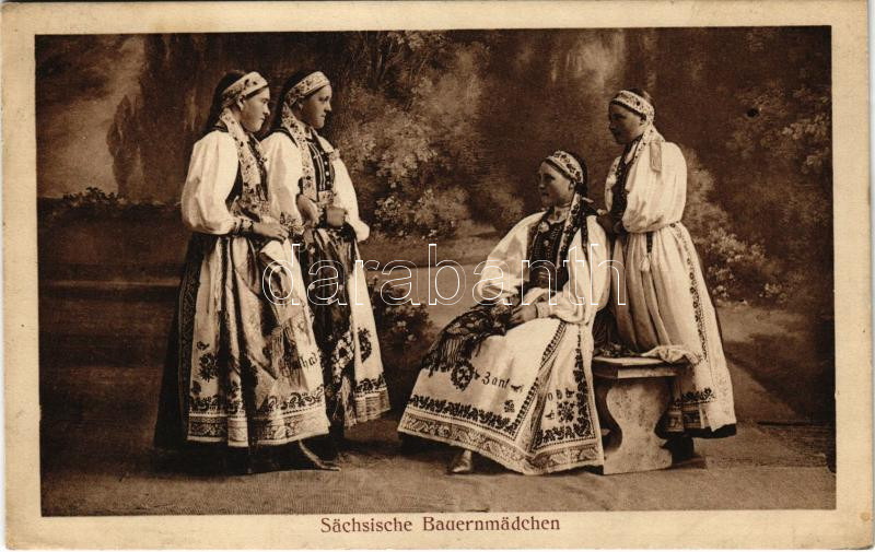 1913 Erdélyi szász leányok. Jos. Drotleff, Emil Fischer / Sächsische B... https://www.darabanth.com/de/437-Fernauktion/437.0/Ansichtskarten/Siebenburgen~1500006/1913-Erdelyi-szasz-leanyok-Jos-Drotleff-Emil-Fischer-Sachsische-Bauernmadchen-Transylvan~II2853156