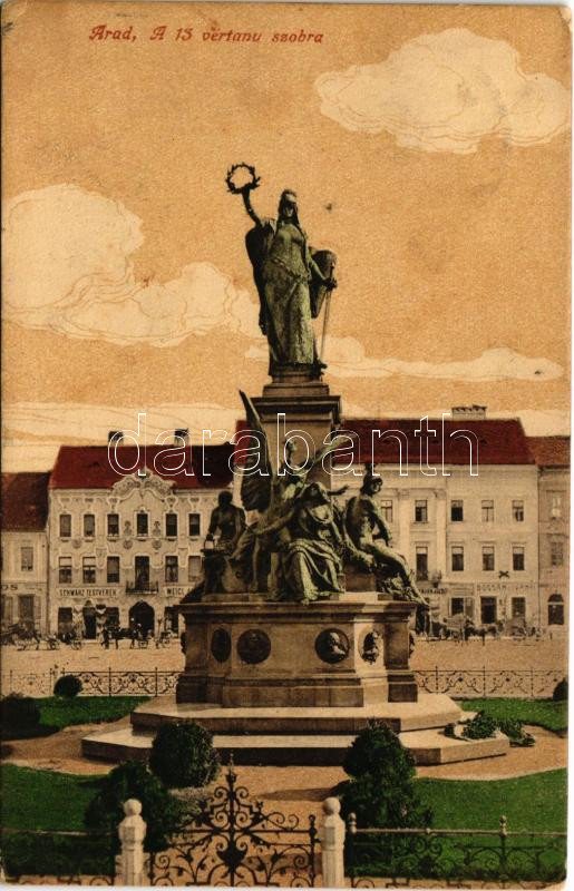 1917 Arad, A 13 vértanú szobra, Schwarz Testvérek, Weigl, Bogsán és Iv... https://www.darabanth.com/de/437-Fernauktion/437.0/Ansichtskarten/Siebenburgen~1500006/1917-Arad-A-13-vertanu-szobra-Schwarz-Testverek-Weigl-Bogsan-es-Ivanyi-uzlete-martyrs-s~II2841475
