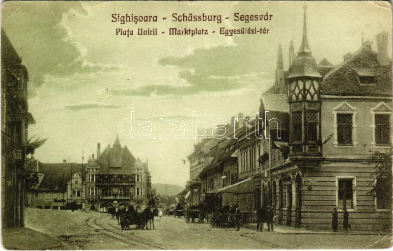 1929 Segesvár, Schässburg, Sighisoara; Piata Unirii / Marktplatz / Egy... https://www.darabanth.com/de/437-Fernauktion/437.0/Ansichtskarten/Siebenburgen~1500006/1929-Segesvar-Schassburg-Sighisoara-Piata-Unirii-Marktplatz-Egyesulesi-ter-piac-bank-~II2855016