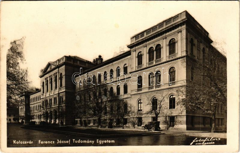 1940 Kolozsvár, Cluj; Ferenc József Tudomány egyetem, autók / universi... https://www.darabanth.com/de/437-Fernauktion/437.0/Ansichtskarten/Siebenburgen~1500006/1940-Kolozsvar-Cluj-Ferenc-Jozsef-Tudomany-egyetem-autok-university-automobiles~II2837936