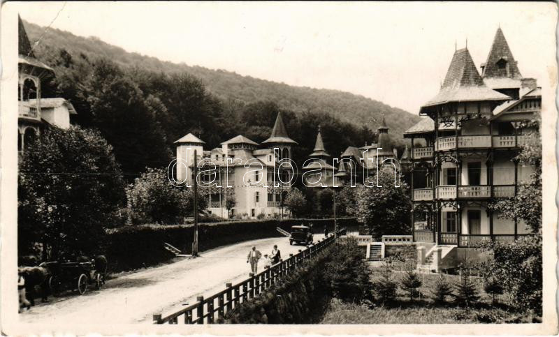 Beschreibung: 1943 Szováta, Sovata; gyógyfürdő, nyaralók, automobil / spa, villas, automobile (EB)