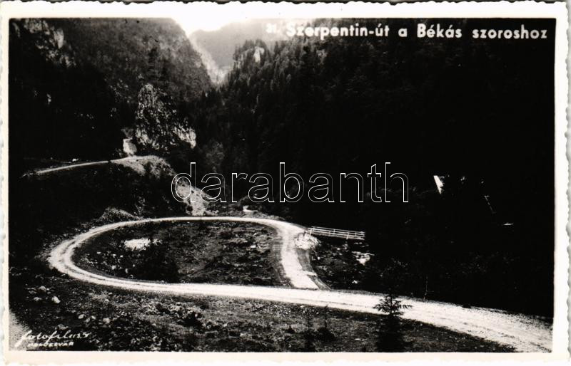 Békás-szoros, Cheile Bicazului; Szerpentin út a Békás szoroshoz / serp... https://www.darabanth.com/de/437-Fernauktion/437.0/Ansichtskarten/Siebenburgen~1500006/Bekas-szoros-Cheile-Bicazului-Szerpentin-ut-a-Bekas-szoroshoz-serpentine-road~II2845408