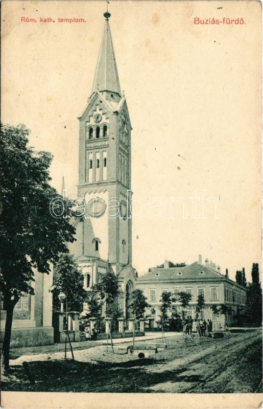 Buziásfürdő, Baile Buzias; Római katolikus templom, szálloda / Catholi... https://www.darabanth.com/de/437-Fernauktion/437.0/Ansichtskarten/Siebenburgen~1500006/Buziasfurdo-Baile-Buzias-Romai-katolikus-templom-szalloda-Catholic-church-hotel-fl~II2838179